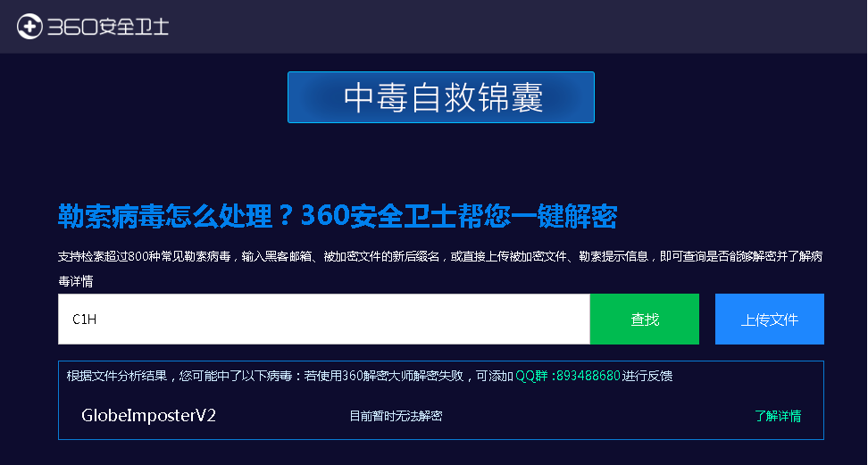 近日.C1H .C2H .C3H .C4H .C5H勒索病毒来袭,我们收到客户的邮件,拿到数据库经过对比该勒索病毒GlobeImposterV2家族中的病毒再次来袭。